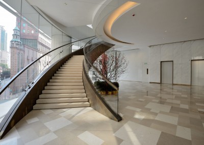 For the atrium of an office building in Hong Kong, HDA were commissioned by Swire Properties to create a monumental and sculptural staircase which would give an iconic identity to the building. Located at the border of Wan Chai, a popular area of the Central business district, the inspiration for the staircase was the joyful atmosphere created by the many neon lights of Wan Chai. The atrium consists of the reception lobby on the 1st floor and a garden on the 2nd. The staircase develops the link between both floors in a spiral movement inspired by the octagonal shape of the building.